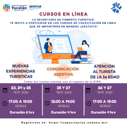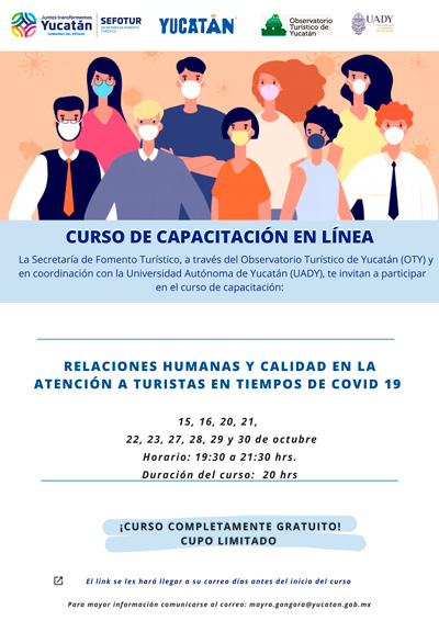La Secretaría de Fomento Turístico, a través del Observatorio Turístico de Yucatán (OTY) y en coordinación con la Universidad Autónoma de Yucatán, les hace una atenta y cordial invitación a participar en los cursos de capacitación en línea.
