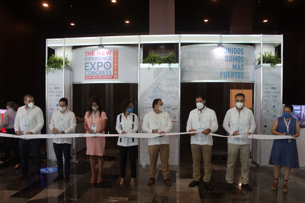 Mérida, Yucatán a 16 de octubre de 2020. Continuando con la instrucción del Gobernador Mauricio Vila Dosal en el Plan de Reactivación Económica, tras siete meses de suspensión de actividades, la Secretaría de Fomento Turístico (Sefotur), en colaboración con la Asociación Mexicana de Profesionales en Exposiciones, Ferias y Convenciones (Amprofec) y Yucatán Meetings, dio el banderazo a The New Experience Expo Congress.